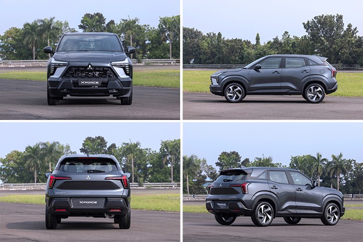 Mitsubishi Xforce sở hữu ngoại hình mạnh mẽ, đậm chất SUV. Kích thước dài x rộng x cao của xe lần lượt là 4.390 x 1.810 x 1.660 (mm), trục cơ sở đạt 2.650 mm. Các thông số này đang vượt trội so với những đối thủ cùng phân khúc. Khoảng sáng gầm cũng cao nhất nhóm khi đạt 222 mm, trong khi bán kính quay vòng lại nhỏ nhất (chỉ 5,2 m), giúp xe dễ dàng vượt qua các địa hình khó cũng như xoay chuyển linh hoạt trong các tuyến đường hẹp.